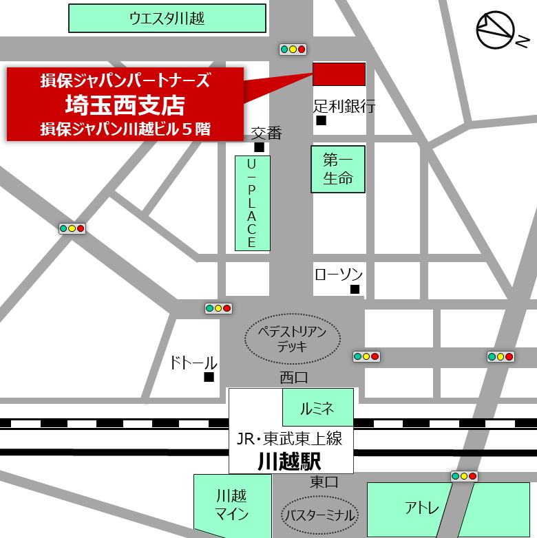 〒350-1123 埼玉県川越市脇田本町11-15 東武鉄道・JR東日本の川越駅西口出口よりロータリーを直進し徒歩約3分。